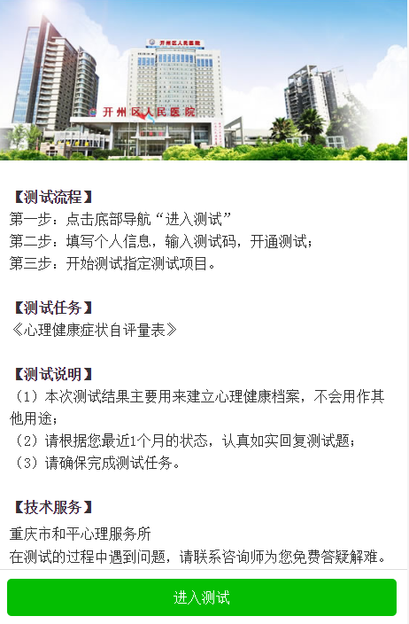 尚心友网为重庆市开州区人民医院员工提供心理健康评估和建档服务